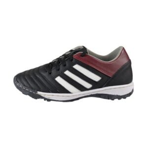 Tenis fútbol rapido Negros, franjas blancas y talon superior rojo
